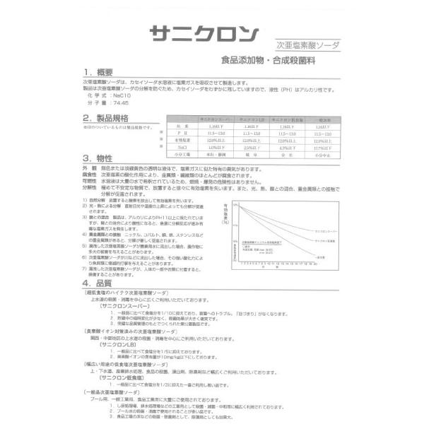 次亜塩素酸ナトリウム 塩素6% 3ケース 専用コック1個無料 サニクロン6% 20kg 低食塩 (食品添加物・次亜塩素酸ソーダ・除菌・殺菌・消毒・漂白)