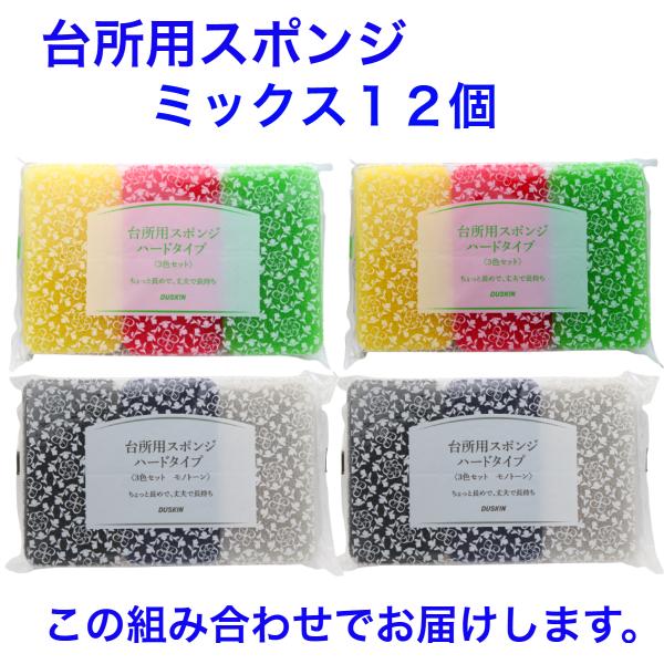 ダスキン 台所用 スポンジ ハードタイプ《ミックス 12個》大人気 カラフル モノトーン 長持ち まとめ買い 新生活 引越し 掃除 ギフト duskin