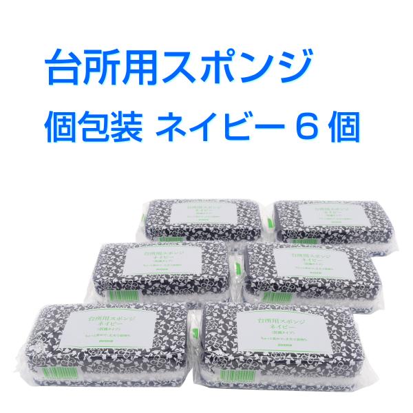 ダスキン 台所用 スポンジ 抗菌タイプ《ネイビー 個包装6個》大人気 シック 丈夫 長持ち 新生活 引越し ご挨拶 duskin