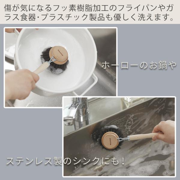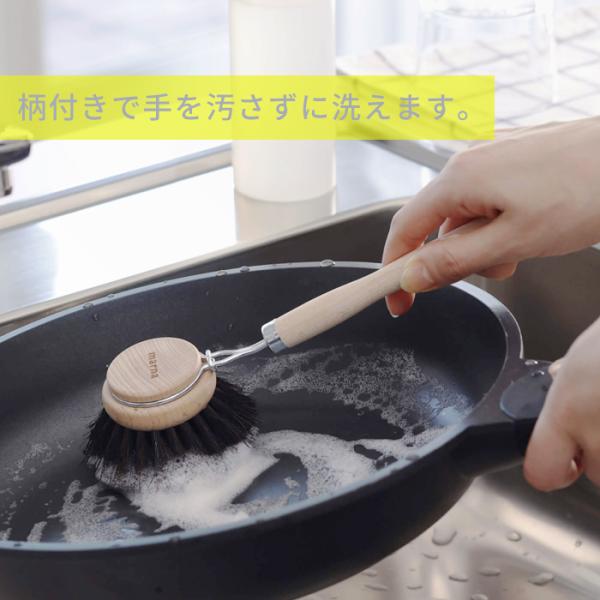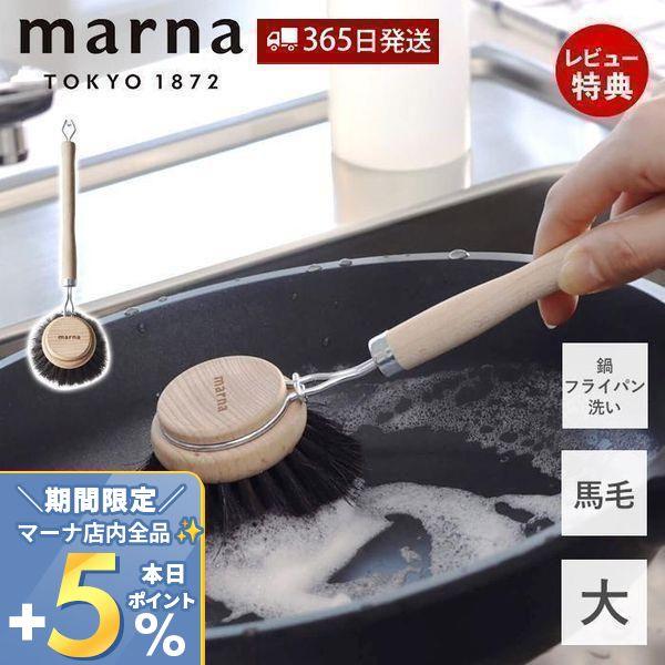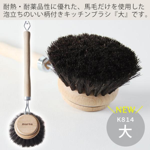 marna マーナ 鍋・フライパン洗い K814 キッチンブラシ 大 馬毛 天然 木 素材 柄付き フライパン 傷つきにくい おしゃれ 持ちやすい