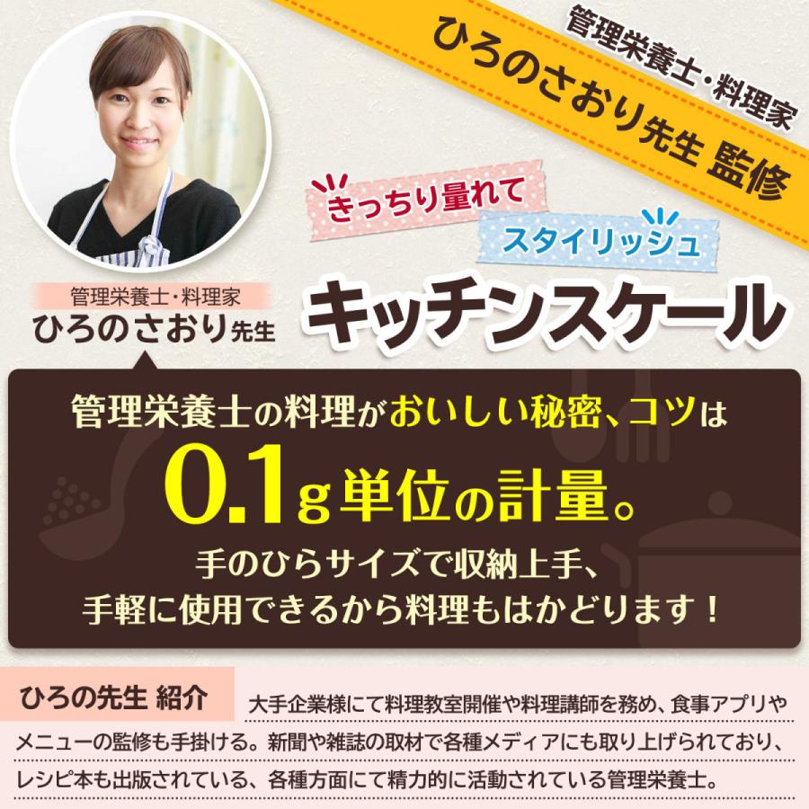 キッチンスケール 3kg [管理栄養士監修] デジタル はかり デジタルスケール スケール 3kg 0.1g 500g 0.01g 単位 クッキングスケール 料理 お菓子作り おしゃれ