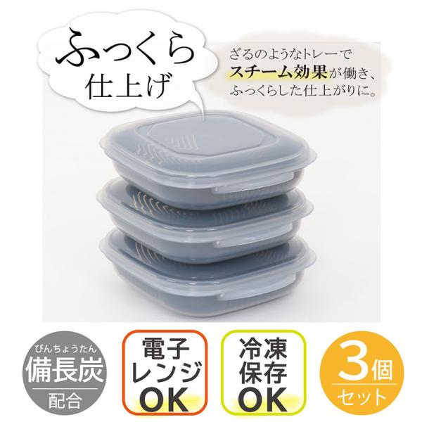 アストロ公式 製品保証付き ザル付き保存容器 3個組 日本製 抗菌 備長炭配合 冷蔵・冷凍保存 電子レンジ ふっくら 温野菜 余ったご飯 一人暮らし 510-47