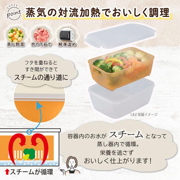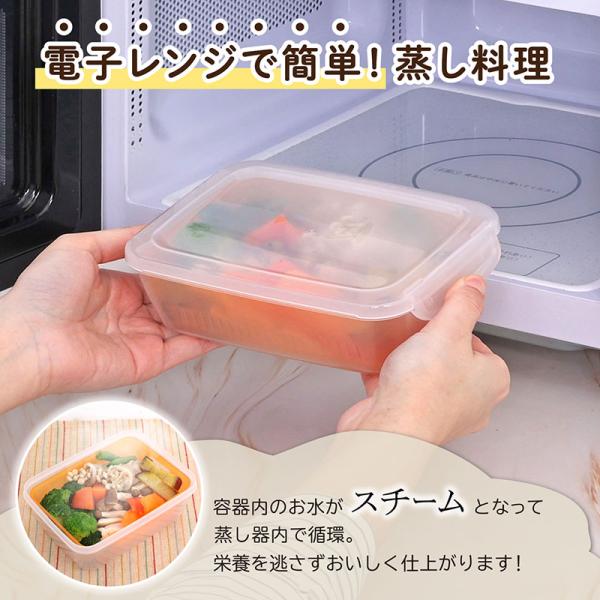 アストロ公式 蒸し器 800ml 小 電子レンジ調理器 日本製 抗菌 食洗機対応 タッパー レンジ対応 耐熱・耐冷保存容器 蒸し料理 温野菜 クリア×オレンジ 516-07