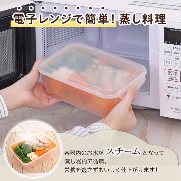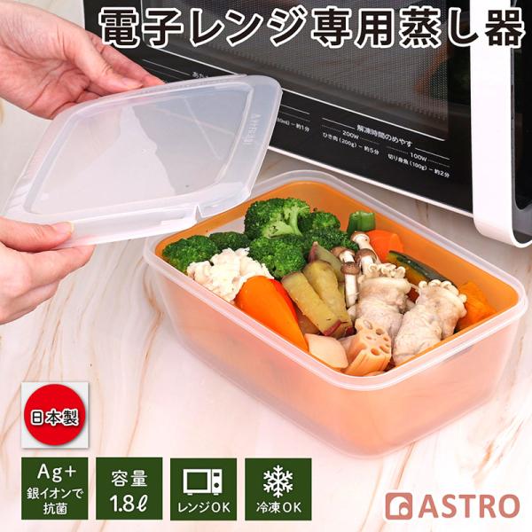 アストロ 蒸し器 1.8L 大 電子レンジ調理器 日本製 抗菌 食洗機対応 タッパー レンジ対応 耐熱・耐冷保存容器 大容量 蒸し料理 温野菜 クリア×オレンジ 516-09
