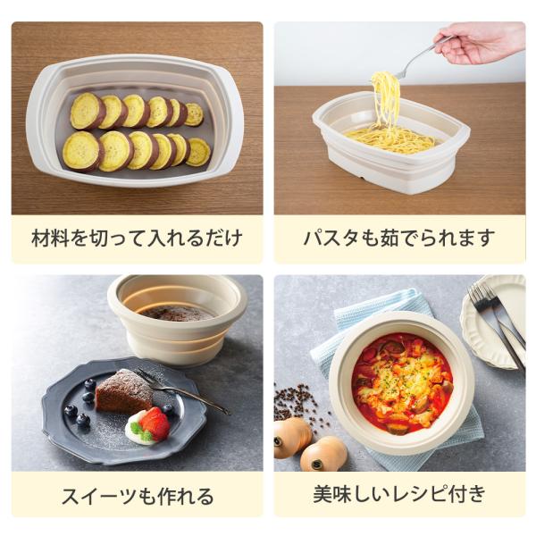 シリコンスチーマー 丸型 折りたたみ 深型 1.6L 電子レンジ オーブン 時短 蒸し器 野菜 シリコン 食洗機対応 レシピ付き マジカリーノ 和平フレイズ