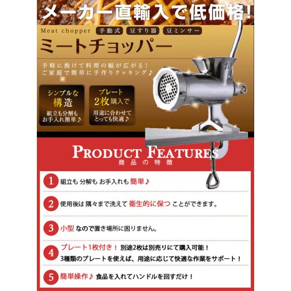 ミートチョッパー MT-10 10型 ネジ止め式 肉挽き機 ミンサー ミンチ機 手動 手回し 豆挽き ひき肉 味噌 家庭用 ステンレス