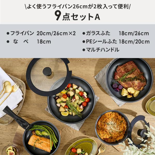 フライパンセット IH ガス火 アイリスオーヤマ フライパン 鍋 ハンドル 取っ手が取れる 高耐久4層構造 ダイヤモンドコート 9点 IPDCI-T9S *