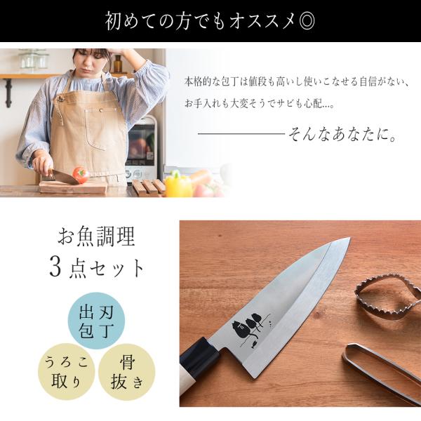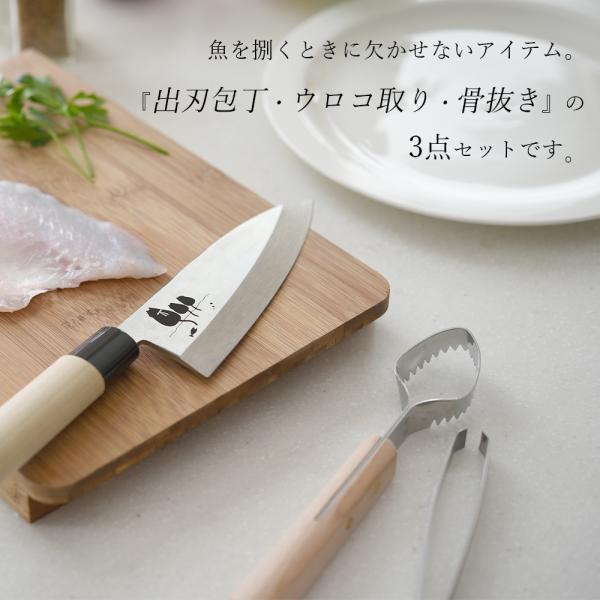 出刃包丁 鱗取り 骨抜き 日本製 3点 包丁セット 鱗取り 魚 ウロコ取り 骨抜き 魚 日本製 ステンレス 鱗取り 魚 ウロコ取り 骨抜き 魚 ネコ 燕の匠技 猫柄 調理