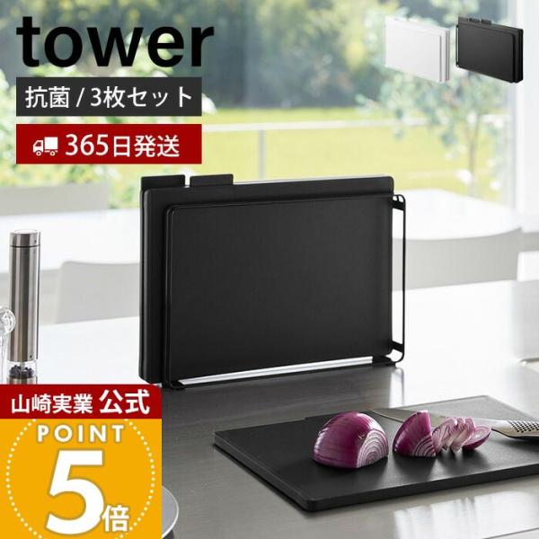 山崎実業 公式 タワー 食洗機対応 抗菌まな板3枚セット tower まないた カッティングボード 両面使用 AG+抗菌加工 滑り止め 8184 8185