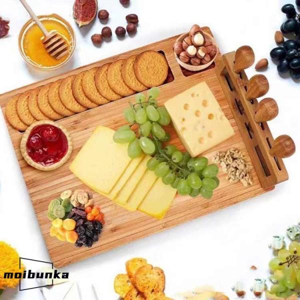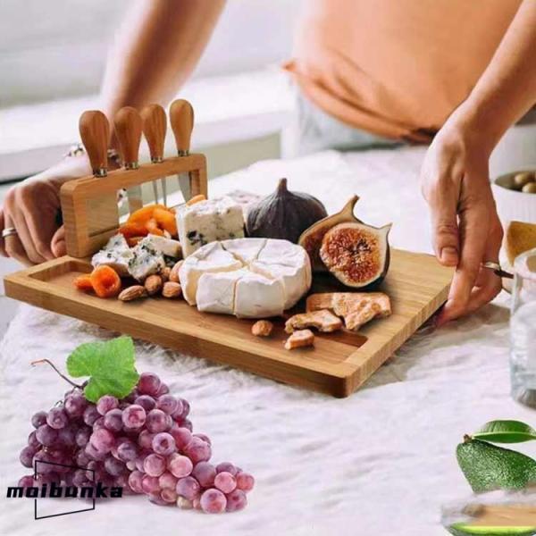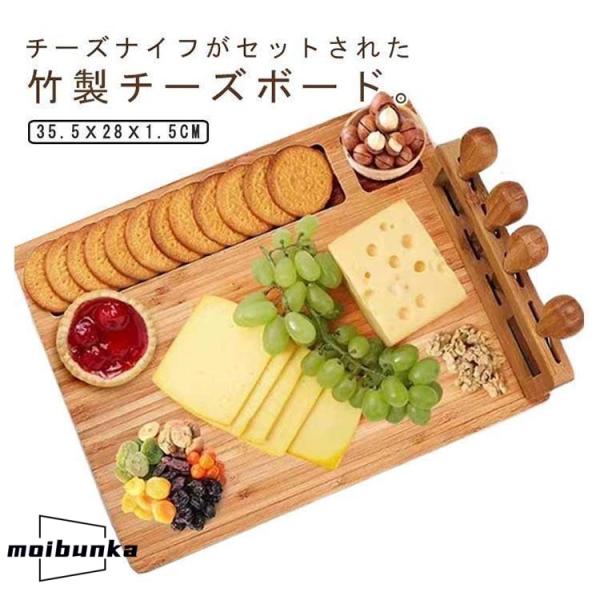 チーズプレート チーズナイフ付き 天然竹 トレー 木製 チーズボード まな板 カッティングボード ナチュラル 盛り付け トレイ プレート ホームパーテ