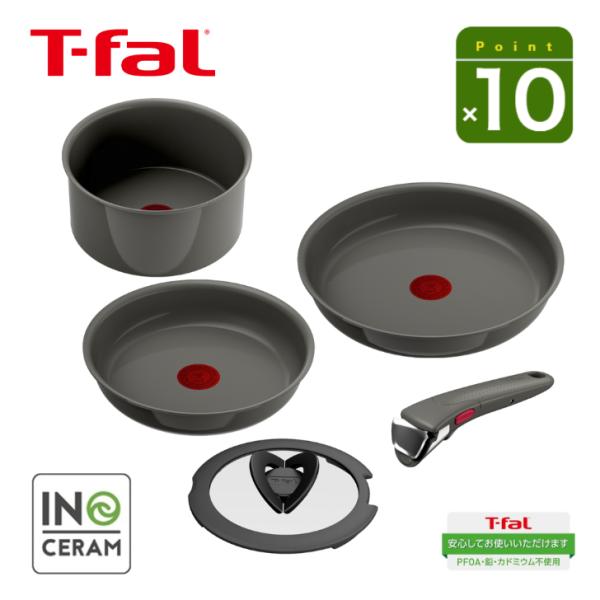 BONUSエントリーでポイント10倍【特典付き】T-fal インジニオ・ネオ IHセラミックグライド アースグレー セット5(IH対応)百貨店・専門店限定 ティファール