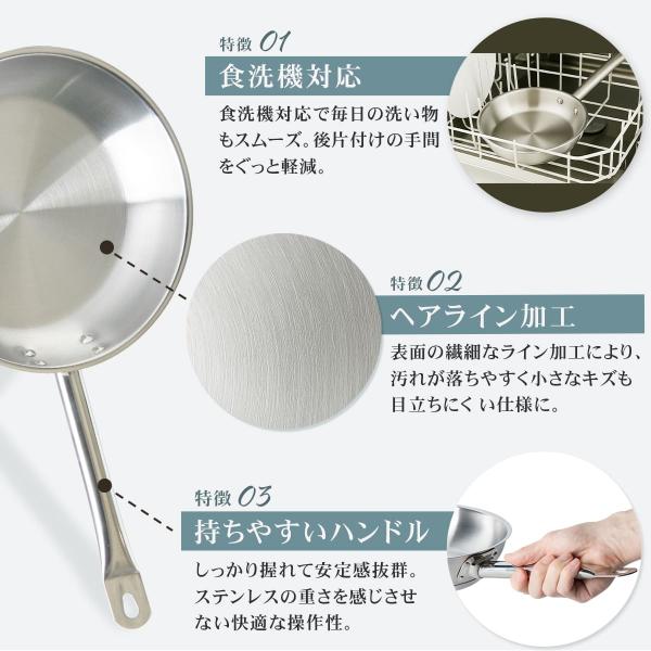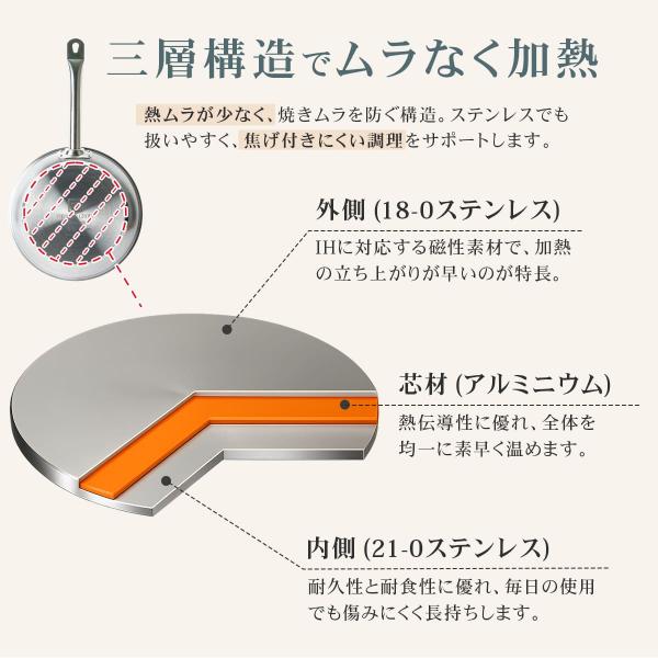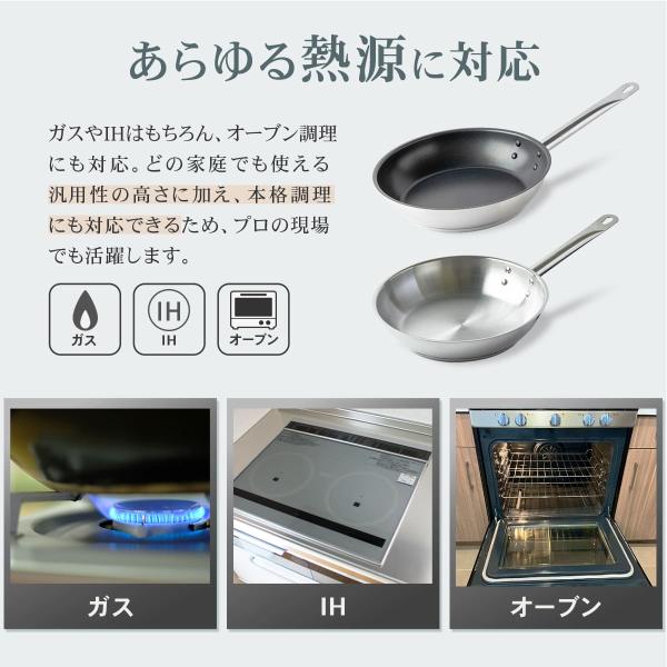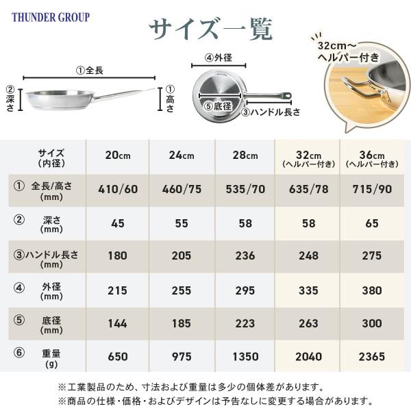 Thunder Group ステンレスフライパン 20〜36cm 8〜14インチ 全5サイズ ガス IH対応 熱伝導に優れた三層構造 業務用