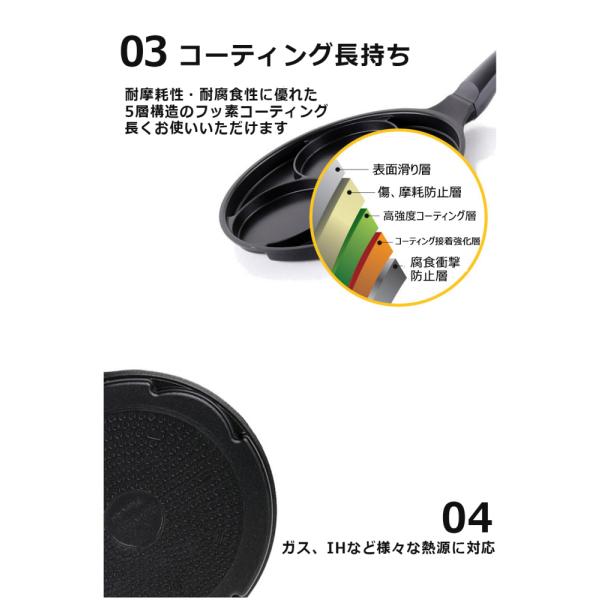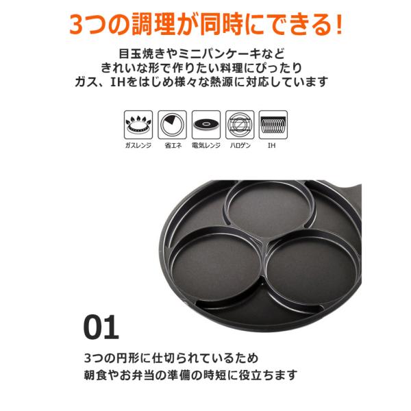 フライパン 仕切り付き 3つ トリプルパン IH対応 目玉焼き パンケーキ お弁当 24cm