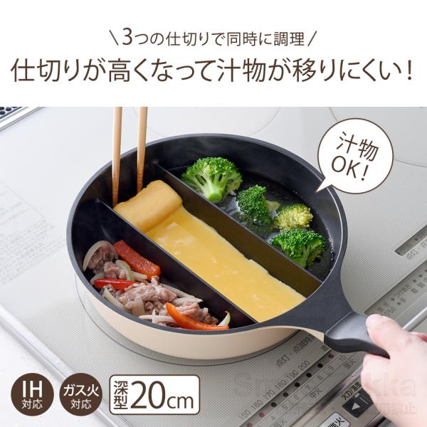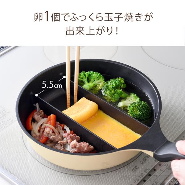 仕切りフライパン 弁当 IH対応 センターエッグトリプルパン mini 20cm 時短 同時調理 卵焼き器 深型 ソイビーン 24年2月ヒルナンデスで紹介 アーネスト