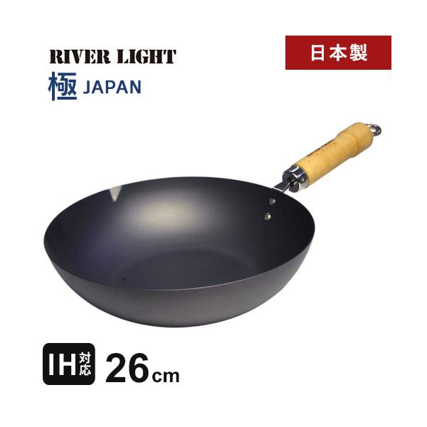リバーライト RIVERLIGHT 極 JAPAN 鉄 炒め鍋 右口用 26cm JR1426 鉄フライパン IH対応 日本製 プレミアム 鉄製フライパン 深型 直火対応 錆びにくい