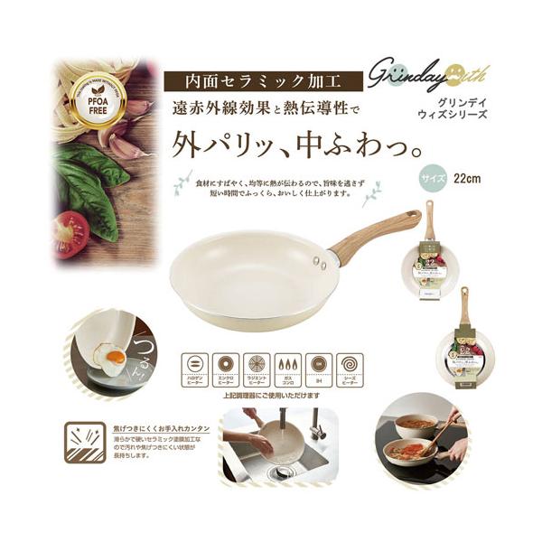 カクセー Grinday with グリンデイ・ウィズ IH対応 セラミックコーティング フライパン 22cm ウォームアイボリー NB-43