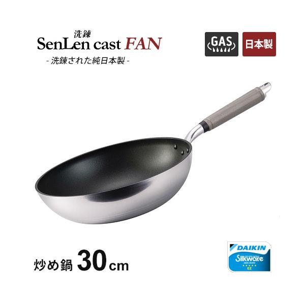 北陸アルミ センレンキャストFAN 炒め鍋(フライパン) 30cm ガス火専用 ふっ素加工 アルミマグネシウム合金 軽量 キッチン 日本製 A-2816