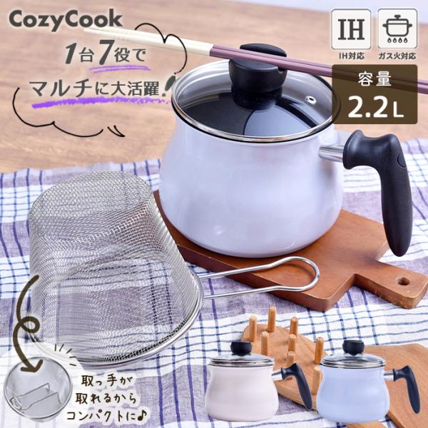 マルチポット 鍋 取っ手が取れる ストレーナー セット 2.2L ガラスふた付き コージークック 送料無料