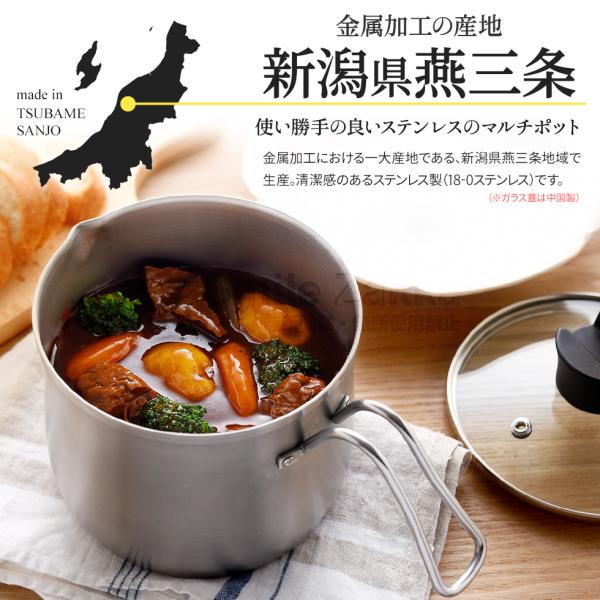 燕三条 ステンレスマルチポット14cm ストレーナー付き 公式店 逸品物創 日本製 IH対応 片手鍋 ザル コンパクト セット 揚げ物 蒸し器 アーネスト