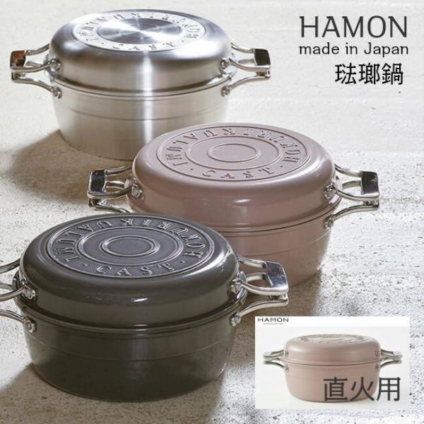 日本製 HAMON アルミ鋳造琺瑯鍋 ガス火用 薄桜 A-2031 はもん 北陸アルミニウム