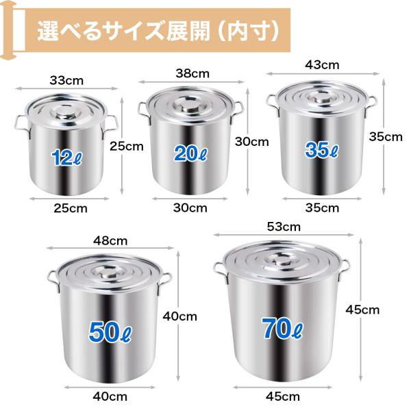 寸胴 鍋 業務用 ステンレス スープ鍋 調理器具 大容量 70l 大鍋 両手鍋 アウトドア レジャー キャンプ 大人数 大型 45cm 寸胴鍋