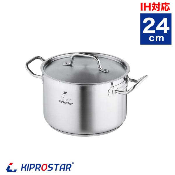ステンレス半寸胴鍋 IH対応 24cm 蓋付 KIPROSTAR 鍋 カレー鍋 スープ 寸胴 ステンレス 業務用