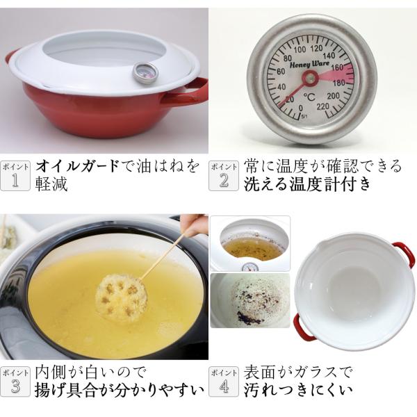天ぷら鍋 24cm オイルポット 2点セット ih対応 温度計付き 揚げ物 鍋 ホーロー 両手鍋 富士ホーロー 琺瑯 直火 IH スターターセット