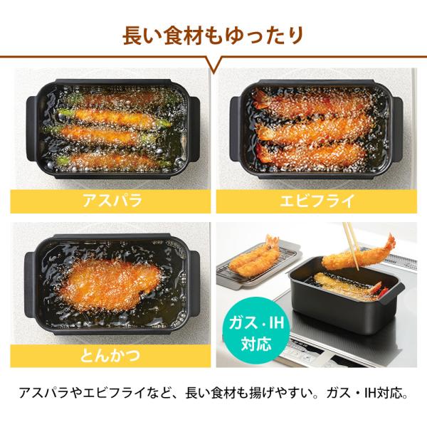 角型揚げ鍋 ガス IH対応 直火 鍋単品 レギュラーサイズ 鉄 鉄鍋 角型天ぷら鍋 四角 スクエア コンパクト 揚げ物鍋