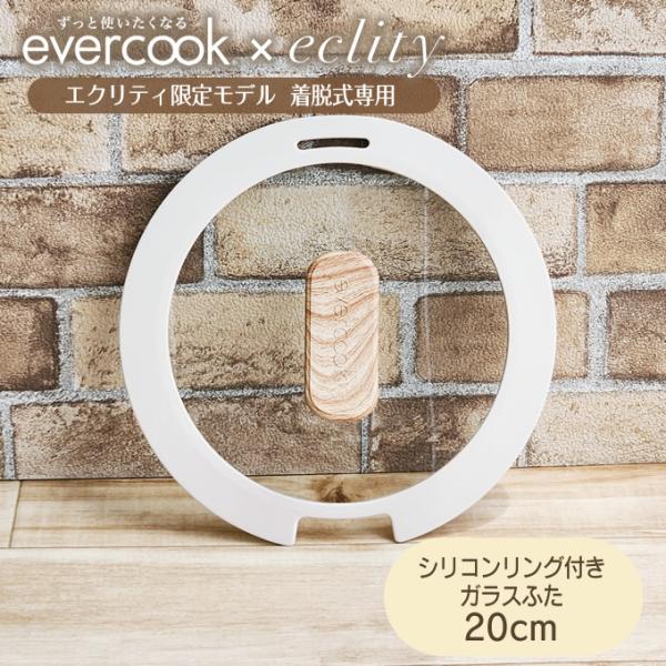 evercook 選べるエバークック 20cmシリコンリング付きガラスふた エクリティ限定モデル アイボリー EACSGC20IV ドウシシャ 着脱式