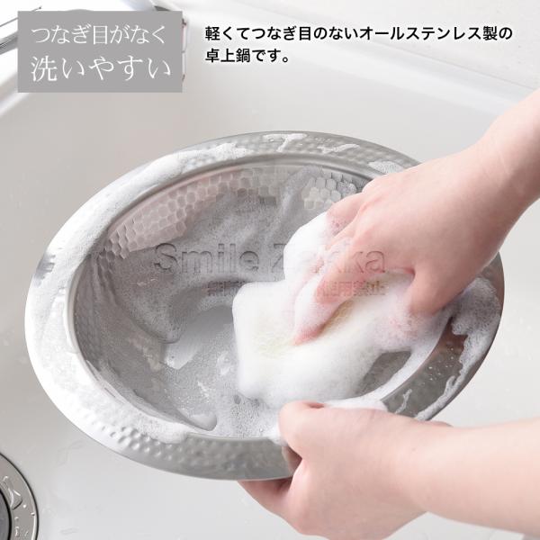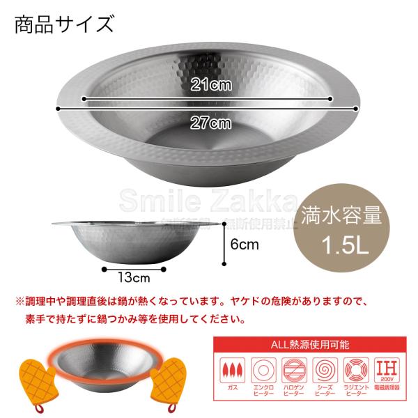 とにかく洗いやすいステンレス卓上鍋 21cm 燕三条製 槌目 ih ガス 直火 しゃぶしゃぶ鍋 麺鉢 うどん鉢 そうめん鉢 ボウル サラダボール サラダ皿 日本製