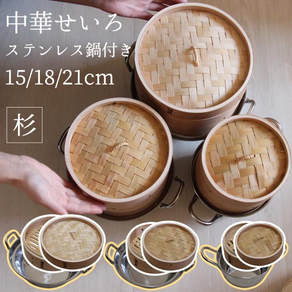 【1980円〜/選べるセット】せいろ 蒸し器 杉 ステンレス セイロ鍋つき 15cm 18cm 21cm 業務用 フタ 蓋 身 ナベ ステンレス鍋 セット 1段 2段 天然 seiro