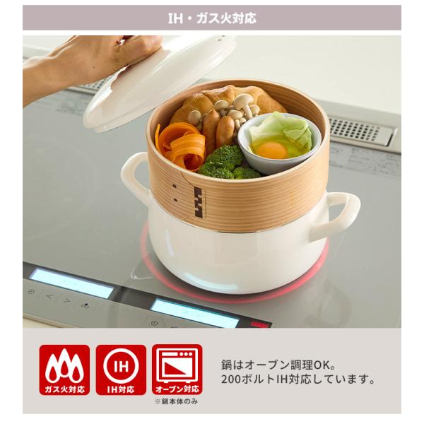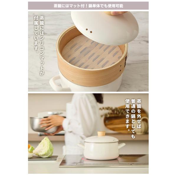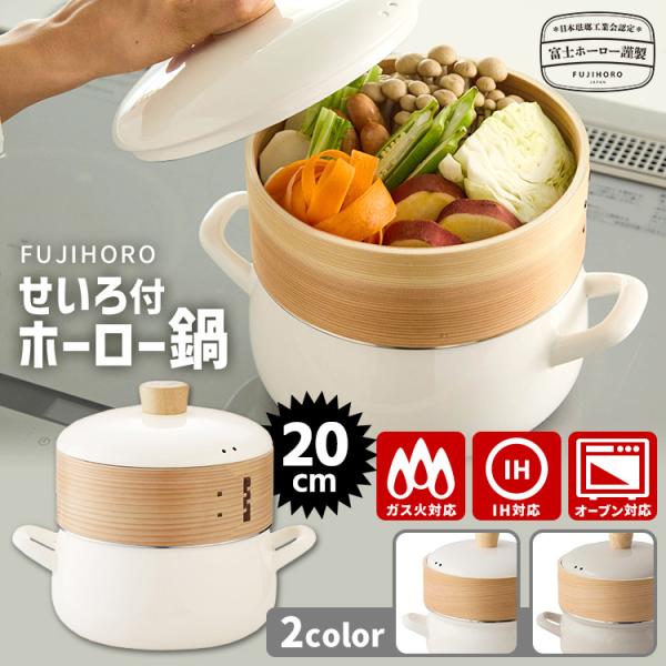 富士ホーロー正規品 せいろ付きホーロー鍋 20cm (2.9L ガス・IH対応 スチーマー 蒸し器 ほうろう鍋) 特典付