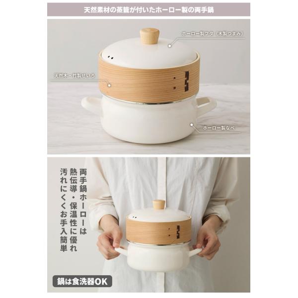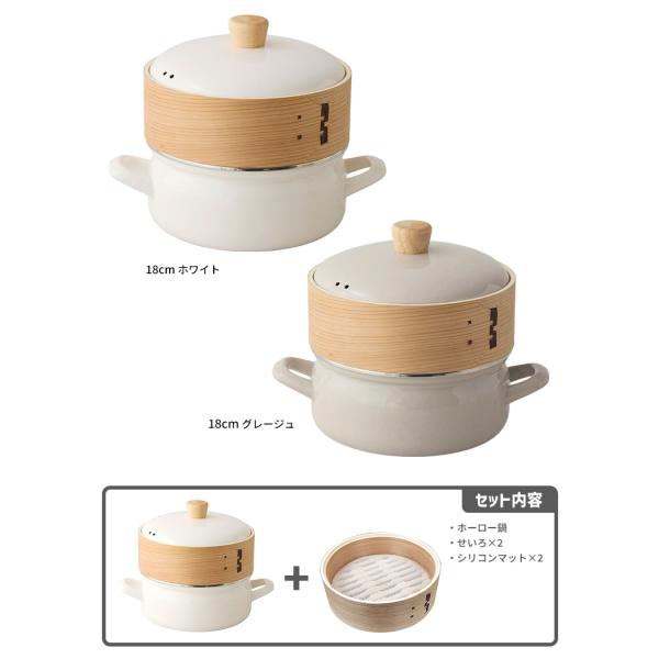 富士ホーロー正規品 せいろ付きホーロー鍋+せいろ1段セット 18cm (2.0L せいろ2段 ガス・IH対応 スチーマー 蒸し器 ほうろう鍋) 特典付