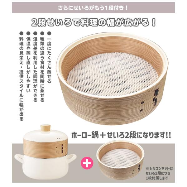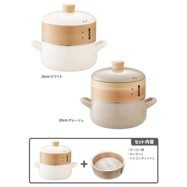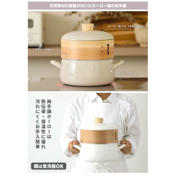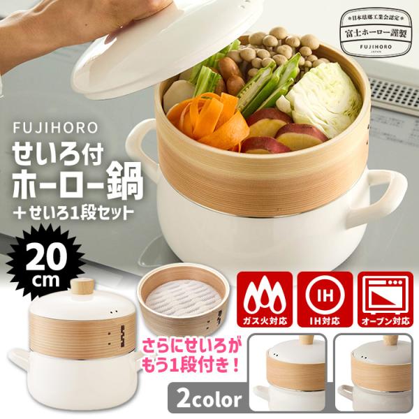 富士ホーロー正規品 せいろ付きホーロー鍋+せいろ1段セット 20cm (2.9L せいろ2段 ガス・IH対応 スチーマー 蒸し器 ほうろう鍋) 特典付