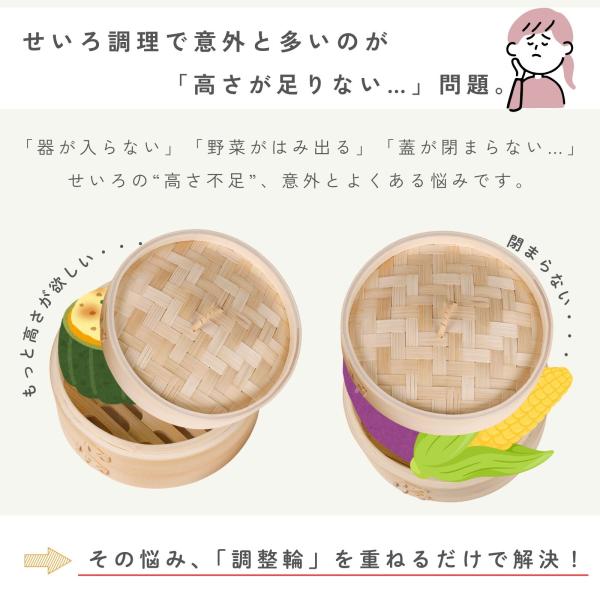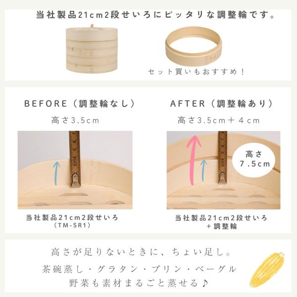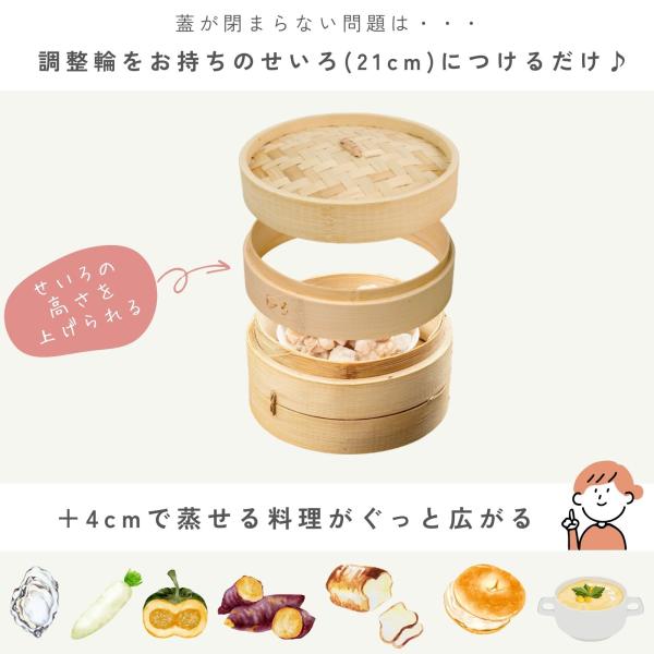 竹美TAKEMI 竹製せいろ用 調整輪 21cm専用 高さ調整リング 台輪 蒸籠パーツ 天然竹 蒸し器 拡張用 深さアップ TM-SRH