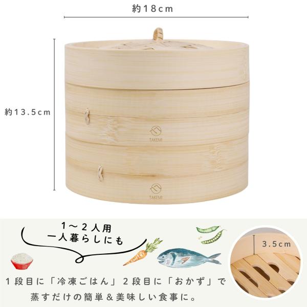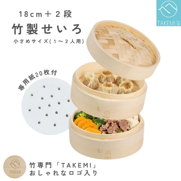 竹製せいろ 18cm 2段セット 一人用 二人用 一人暮らし ヘルシー 温野菜 専用紙20枚付 竹美TAKEMI TM-SRS
