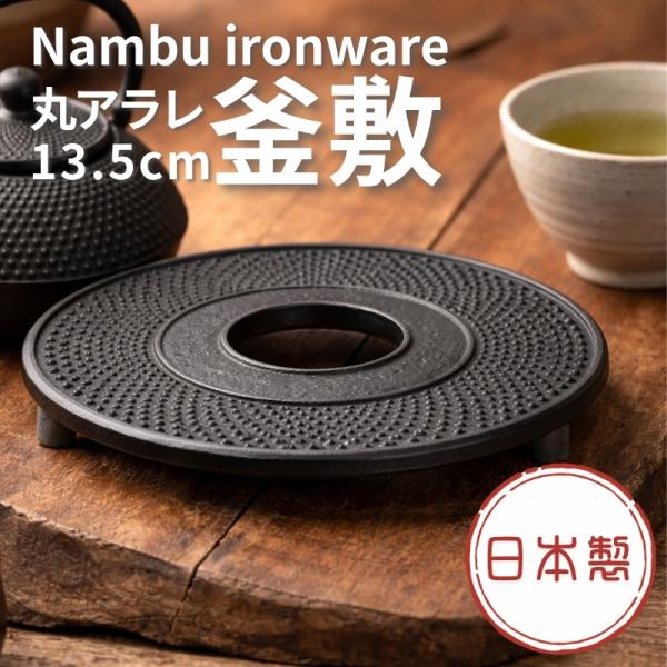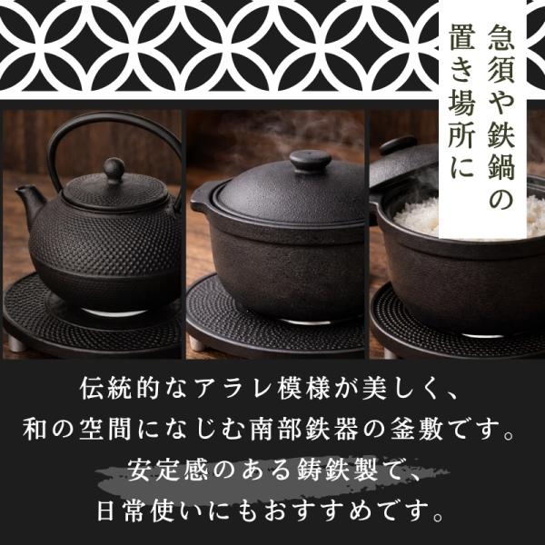 鍋敷き 南部鉄器 岩鋳 釜敷 丸アラレ 大 黒 13.5cm 17002