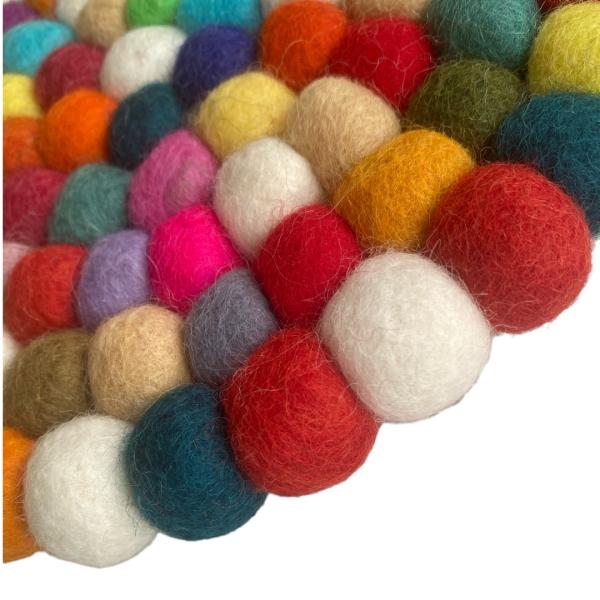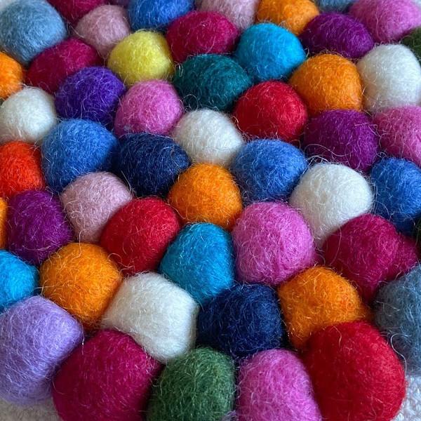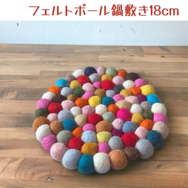 鍋敷き フェルト ボール 丸型 18cm 2cm玉 ハンドメイド アジアン雑貨