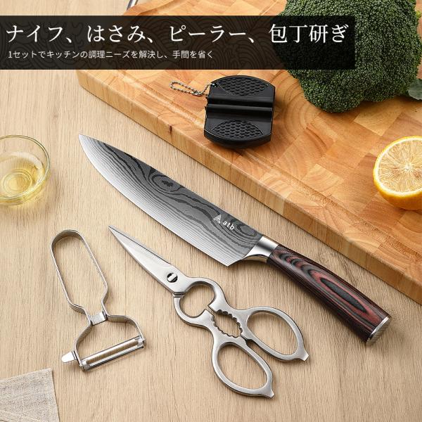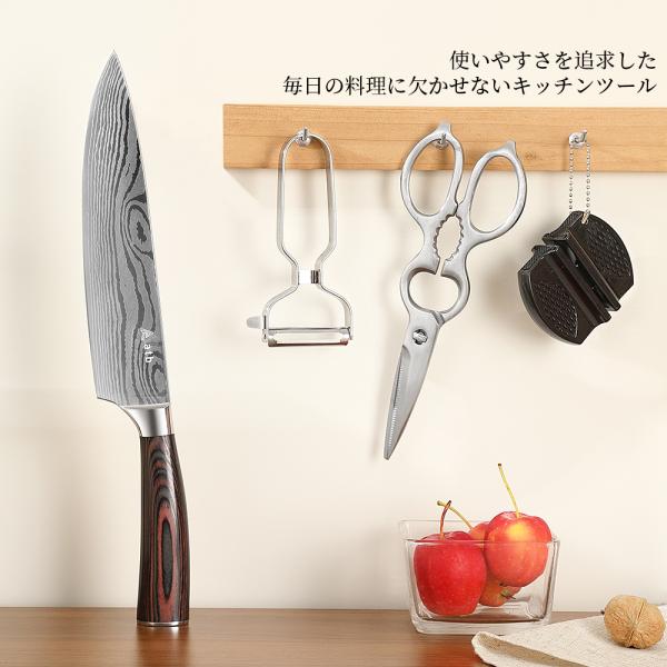 キッチン4点セット 包丁・三徳包丁キッチンバサミ・分解できるキッチンバサミ食洗機対応 錆びにくいピーラー・包丁研ぎ器 調理器具セット 家庭用アウトドア