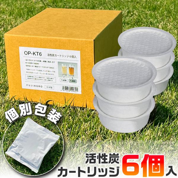 活性炭 カートリッジ 6個入 フィルター オイルポット用 油ろ過 油こし 活性炭フィルター 個包装 富士ホーロー