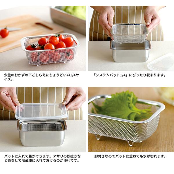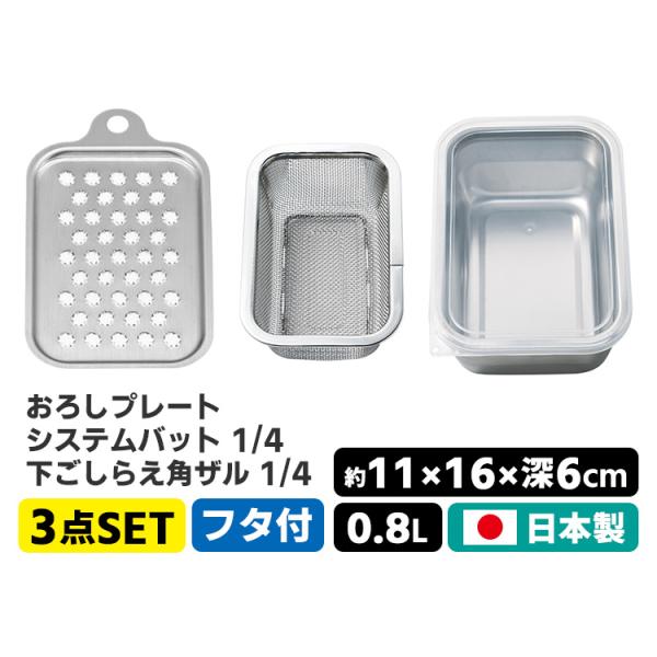 家事問屋 3点セット おろしプレート+システムバット+下ごしらえ角ザル 1/4 (大根おろし器 おろし金)