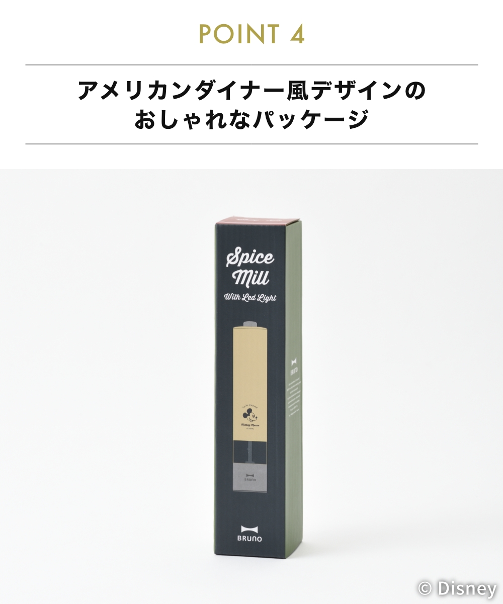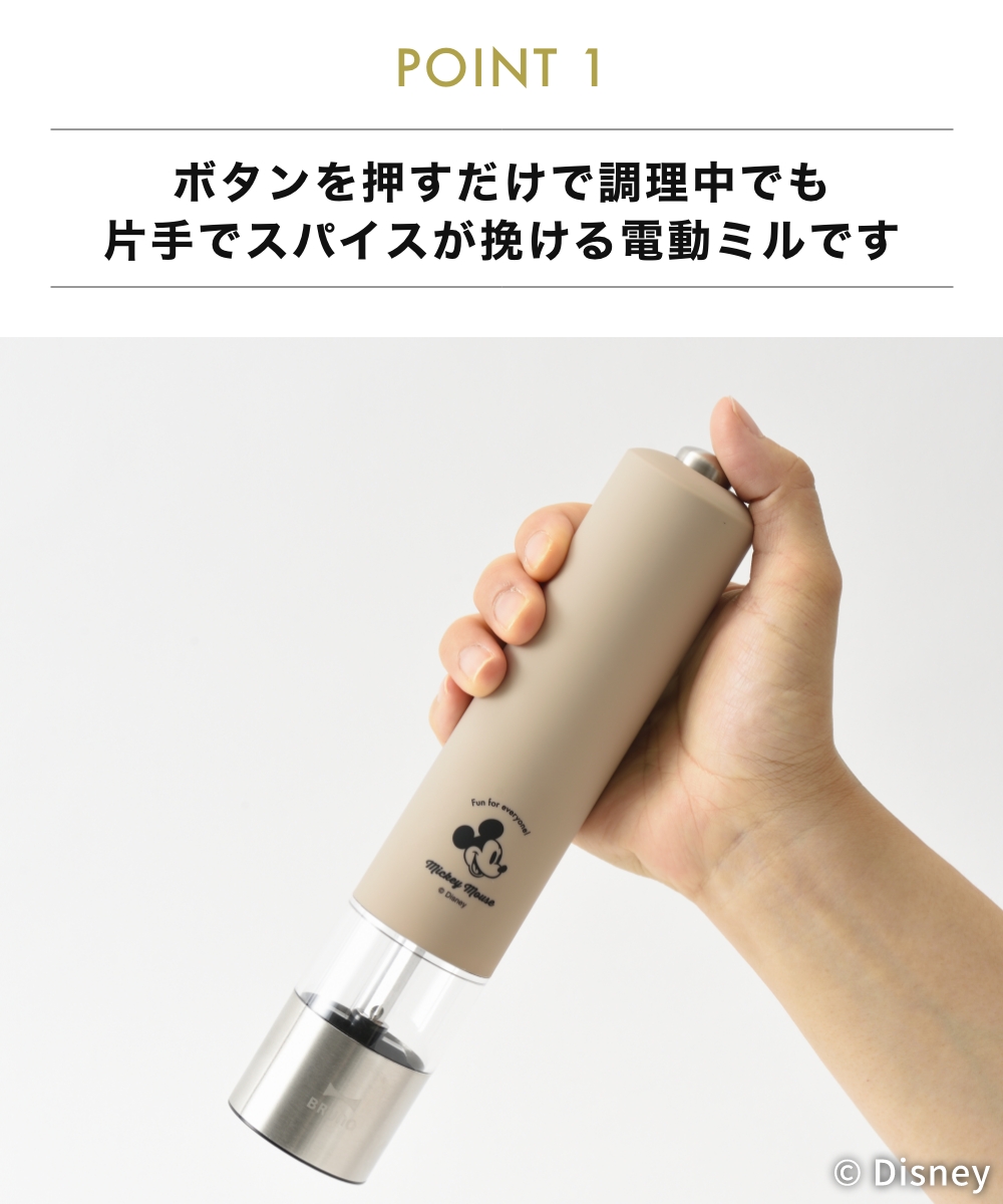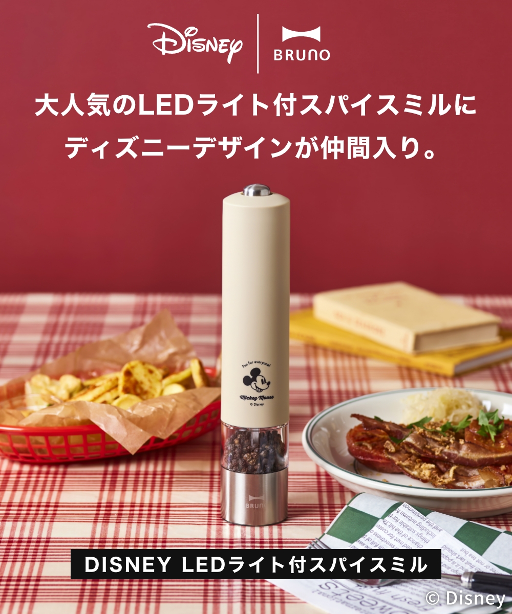 BRUNO DISNEY LEDライト付スパイスミル ベージュ ブルーノ ディズニー 胡椒挽き コショウ 胡椒 調味料 香辛料 岩塩 北欧 ブラックペッパー 片手