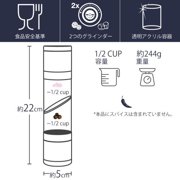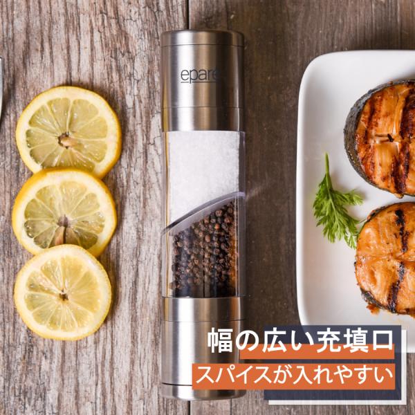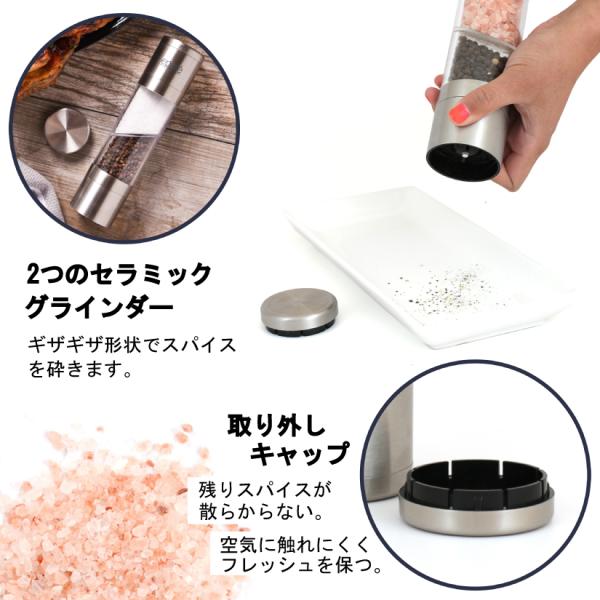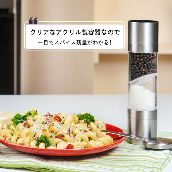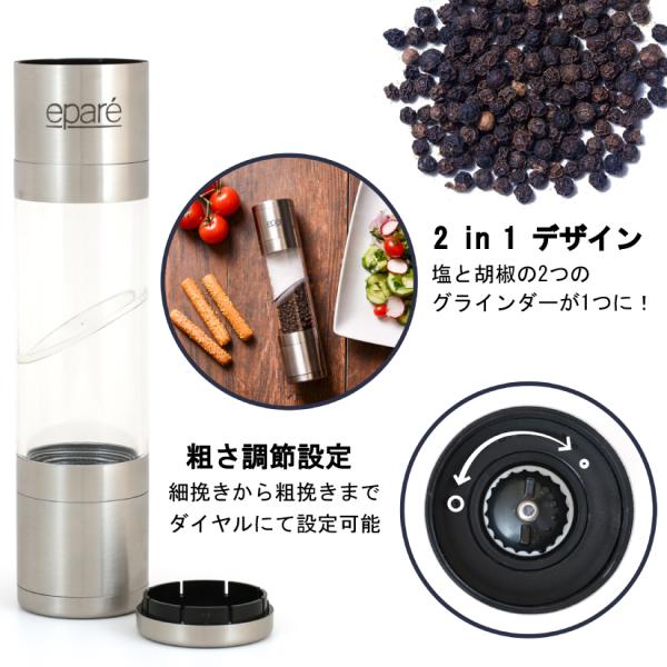 2in1 ペッパーミル 手動 スパイスミル おしゃれ プレゼント ソルト 岩塩 ペッパー 容器 便利グッズ キッチン