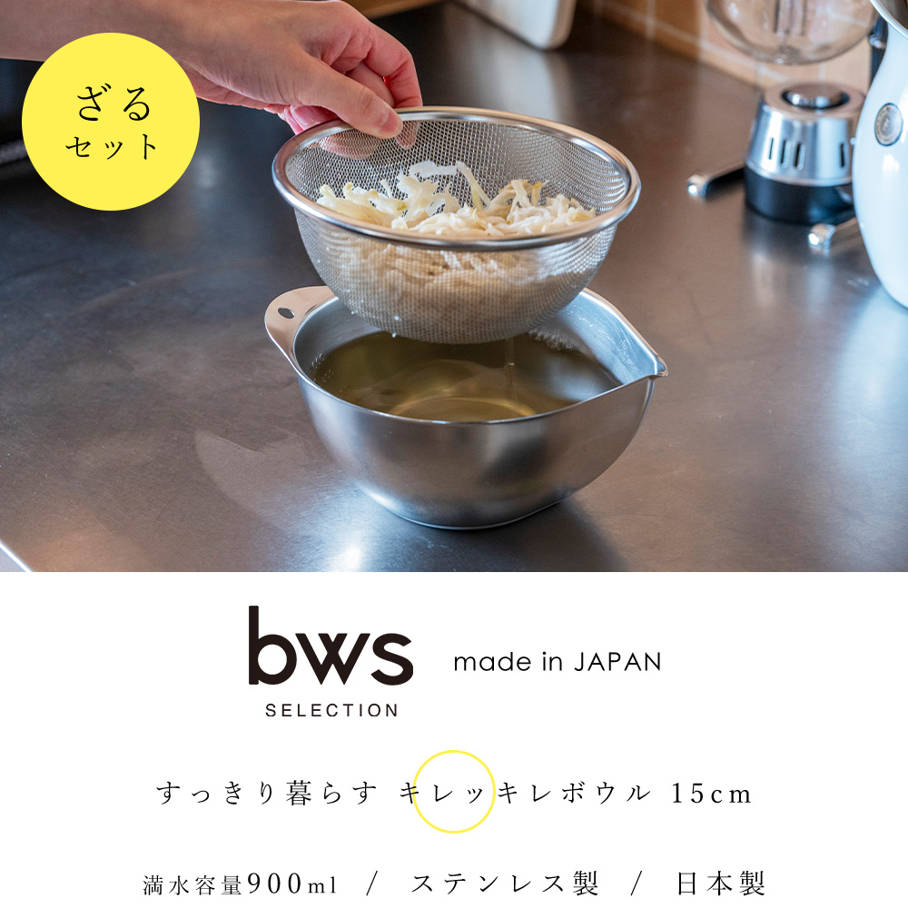 キレッキレボウル 15cm ざる セット ステンレス おしゃれ 日本製 水切り ボール 注ぎ口 燕三条 食洗機 完成品 キッチン ビーワーススタイル