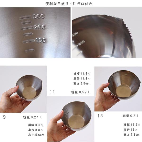 家事問屋 下ごしらえボール9-11-13セット(燕三条 調理用ボウル 合わせ調味料 計量カップ 薬味入れ)