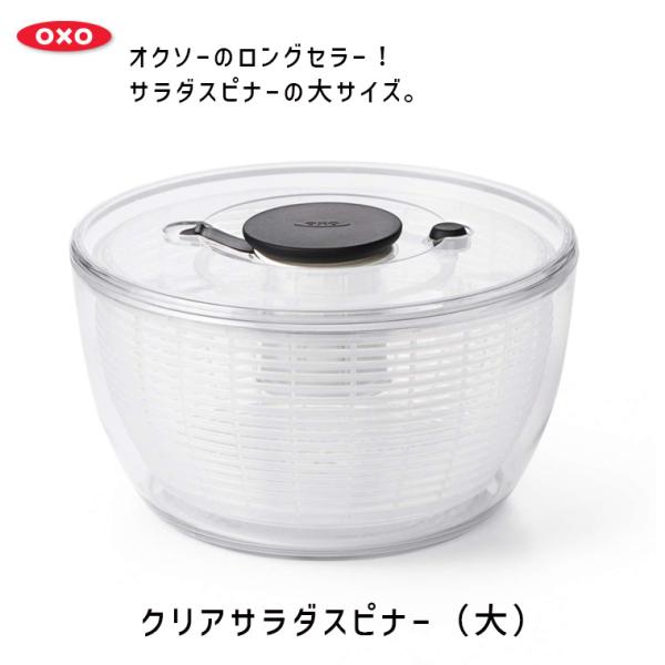OXO オクソー クリアサラダスピナー(大) 当店限定・着後レビュー特典 野菜水切り 水切りかご コンパクト サラダ水切り キッチン 食洗機対応 11230400 国内正規品