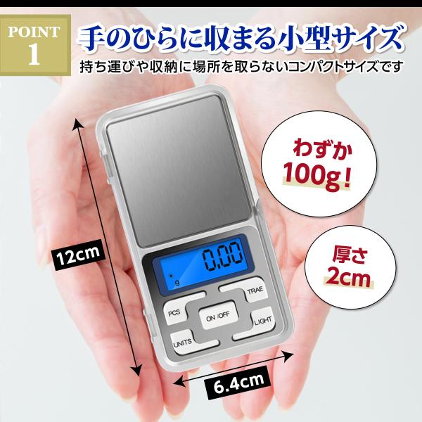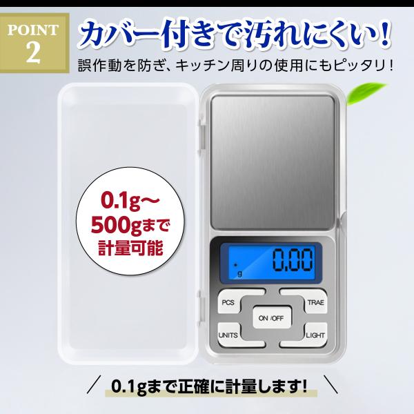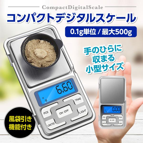 デジタルスケール 計り はかり 小型 コンパクト 計量器 電子秤 キッチン クッキング 風袋引き機能 0.1g〜500g 計測 携帯用 軽量