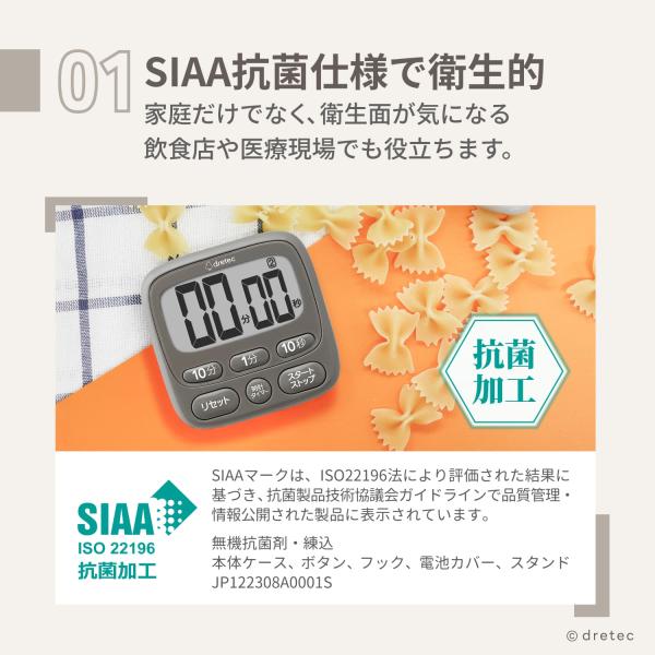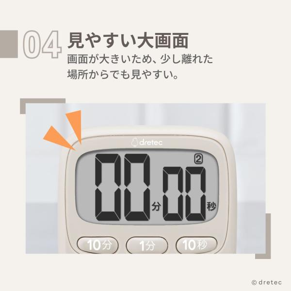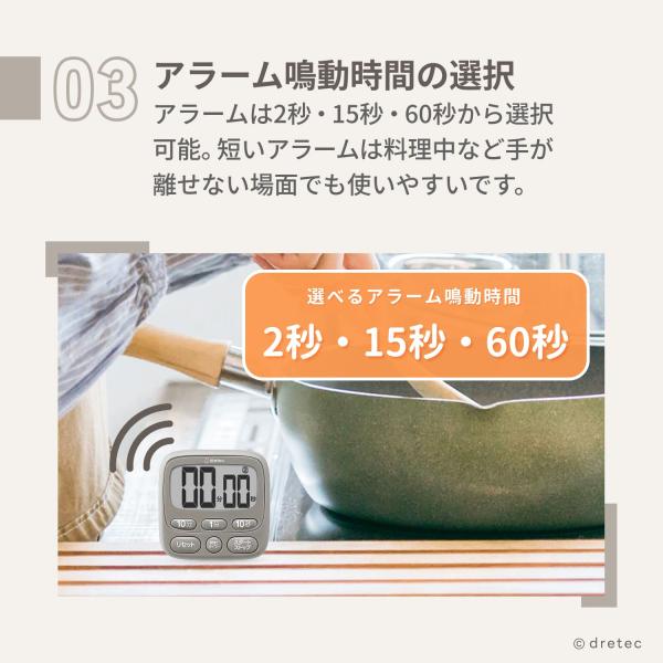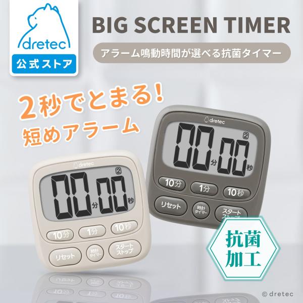 ドリテック 公式 タイマー キッチンタイマー 料理 時計 置き カウントアップ ダウン リピート アラーム 時間 2秒 15秒 60秒 磁石 スタンド 通し穴 抗菌 T-612