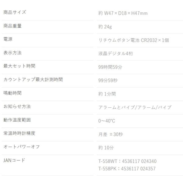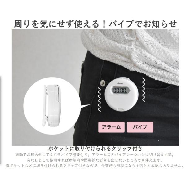 タイマー バイブ アラーム クリップ付 時計 T-558 dretec 学習タイマー フィットネス デジタル 振動 静か 音なし 目覚まし 超小型 ホワイト T-558WT ◆メ