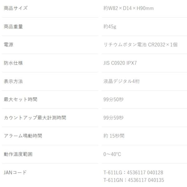 キッチンタイマー 防水タイマー 洗える マグネット 時計表示 T-611 シャボン6 dretec 学習タイマー お風呂 フィットネス 卓上 グリーン T-611GN ◆メ
